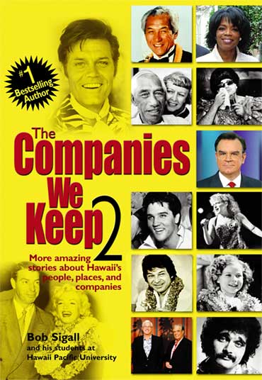 Here are some of the amazing stories in Book 2 The follow up to Bob Sigall’s #1 bestselling book, contains more amazing stories about Hawaii people, places and companies. Here’s a look at some of the stories you’ll find in it: What Imelda Marcos thought of Frank De Lima’s impression of her? One night, Jim Nabors brought Doris Duke and Imelda Marcos to see De Lima’s show at the Noodle Shop. She went backstage to talk with him afterwards. What did she think of the show? She was amazed, she said, at how much he looked like her! Joe Moore’s success and longevity secret The KHON newscaster has been anchor for an amazing 27 years now. He sat down with the author to talk about his career, his connection to Aiea high school and his son, Bryce. And now that he’s at the tail end of his career, he told us what he thinks is the secret to his longevity and success. Who Duke Kahanamoku was named for Few know that Duke Kahanamoku and his father were named for a visiting dignitary who came to Hawaii in 1869. How Shirley Temple met her future husband in Hawaii. Charles Black didn’t know who Shirley Temple was when he met her at a party in Hawaii. That was part of his appeal to her and she was in love at first sight, she said. They were married 53 years. Who was Hawaii’s first visitor from Japan? In 1844, five young fishermen were shipwrecked off Japan in a storm. An American whaling ship brought them to Hawaii. One, “John” Manjiro, ended up advising and translating when Commodore Perry arrived in Japan, and was made a samurai for his service. Four major sports have ties to Hawaii residents Captain Cook found Hawaiians surfing when he arrived here, but can you guess the other three major sports that were created or influenced by people who lived in Hawaii? Don Ho and Kui Lee Kui Lee wrote many of Don Ho’s hits. Who was Kui Lee referring to when he wrote I’ll Remember You? What did Don Ho say he’d name the White House when he was elected the first Hawaiian U.S. President? Whose idea was Magic Island? In 1955, one man suggested two large islands be built in addition to the peninsula he called Magic Island. He wanted to build waterways, bridges and six hotels on them. Who was this Hawaii visionary? Other stories you’ll find in this fascinating book: • Which other names were considered for Aloha Stadium? Click the BUY NOW button below to order The Companies We Keep 1 Click the BUY NOW button below to order TWO copies of The Companies We Keep 2 Or, buy ALL FIVE books for only $115.00, and get a second copy of The Companies We Keep 5 FREE! Note: When you click the BUY NOW button below below and get to the order information, it will say quantity of 1 for $115. This is to mean all 6 books will be shipped to you for $115, which includes taxes and shipping. Mahalo. For book orders of more than 10 copies, please contact us directly at companieswekeep.com. Mahalo! ... also, look for the book now at your favorite bookstores around the islands. Shipping and Handling Books will be sent via US Postal Service. The following charges per book will be added for shipping: